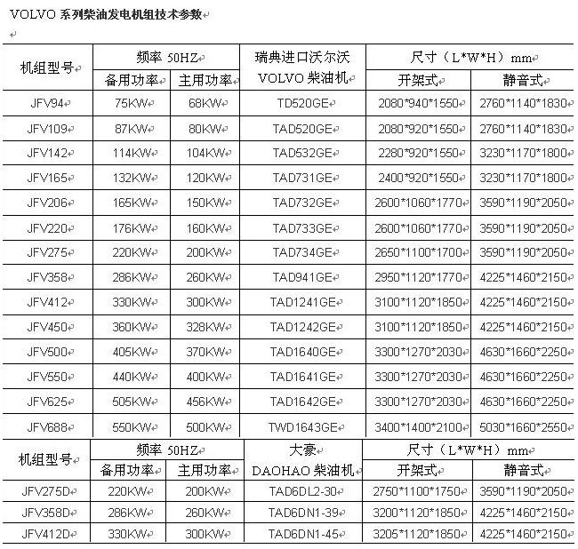 沃爾沃柴油發(fā)電機(jī)組